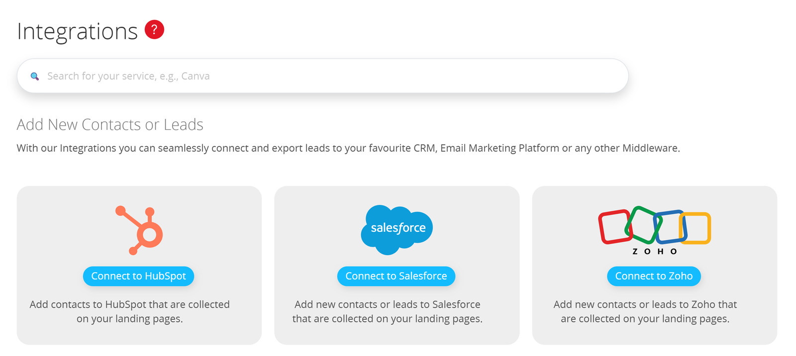Vous souhaitez intégrer vos nouveaux prospects dans votre CRM préféré (Hubspot, Salesforce, ...) ou dans une plateforme de marketing par e-mail comme Mailchimp ou Rapidmail, et ce en toute simplicité ? Intégrez simplement